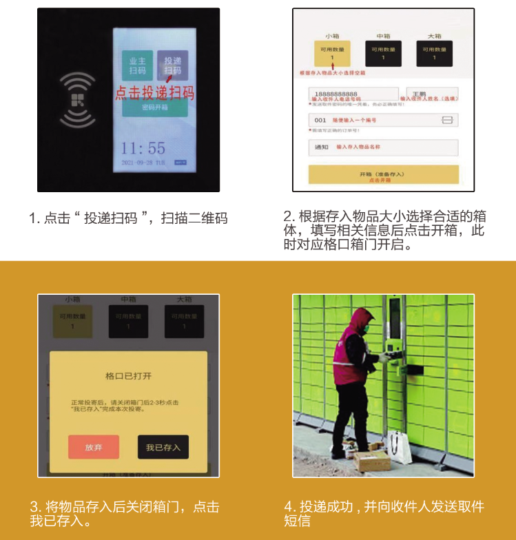 存入后,會以手機短信形式將取件碼發送給收件人。